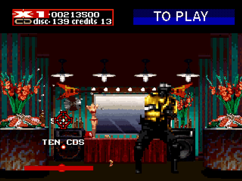 The title was a good candidate for the emerging 32-bit consoles too, with both Sony's and SEGA's machine earning a port. Both are more faithful than the others, but with no gun or mouse support, it's still a slug to play. The PlayStation suffers fairly long mid-level loading which isn't as bad on the Saturn, but the latter is missing some animations. Still, all home conversions offer unlimited continues reducing the difficulty somewhat, but with this style on mayhem, constantly losing lives is inevitable.