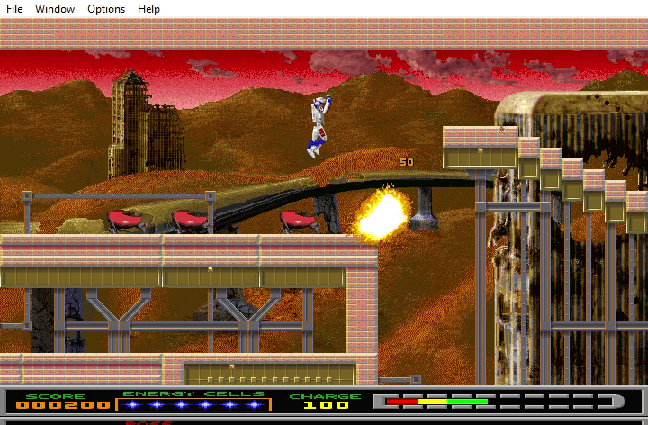 Sierra's involvement is not surprising. They had published the original game and its direct sequel in the west holding on to the rights in the process. What is a little more unusual is how the game is presented. Windows '95 was new, and many companies were scrambling to capitalise on its revolutionary features. Thexder for Windows '95 took advantage of them by placing each element of the display in its own separate window. You have the main window where the game is played, a separate one for the map that fills in as you go and one each for your weapons, special items and enemy types. You can re-size, re-position or remove them however you please, but generally speaking I found it a little cumbersome.